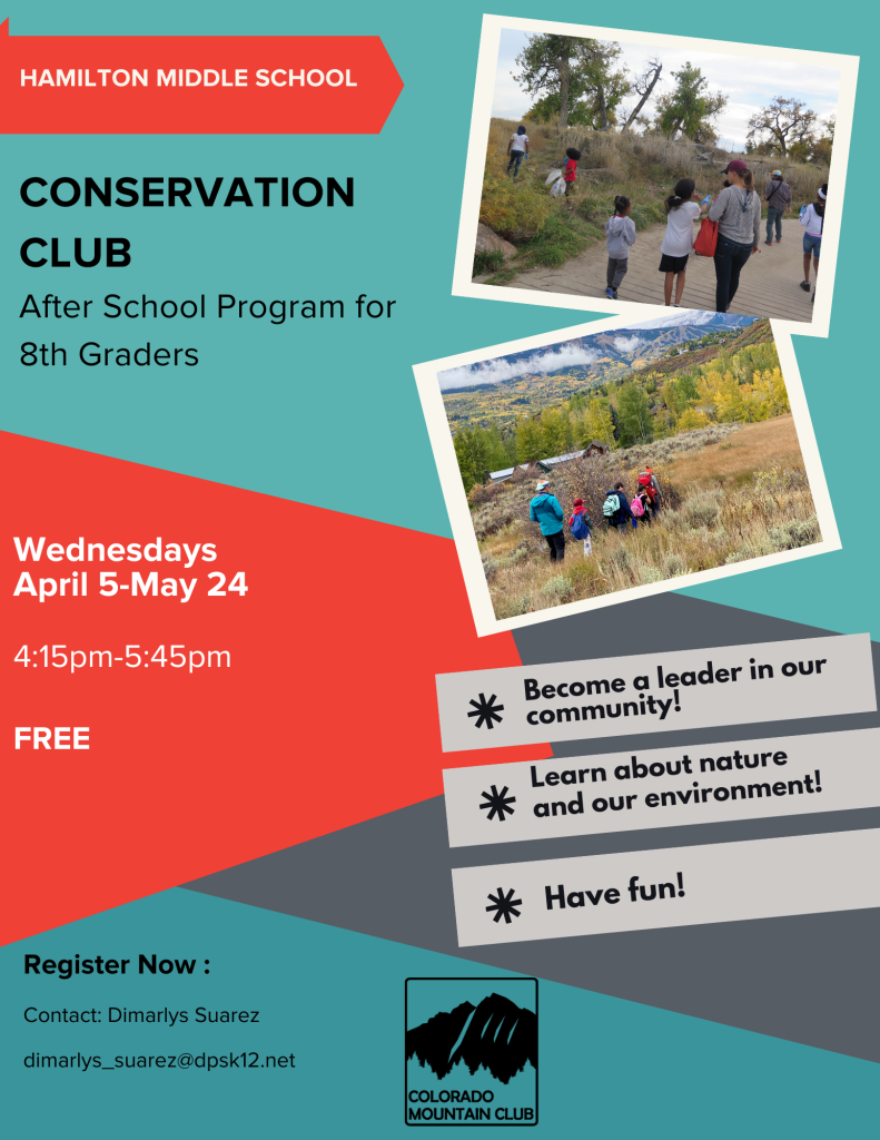 Hamilton was chosen to receive a grant-paid after-school program through Colorado Mountain Club for our 2022-2023 8th-grade students.
